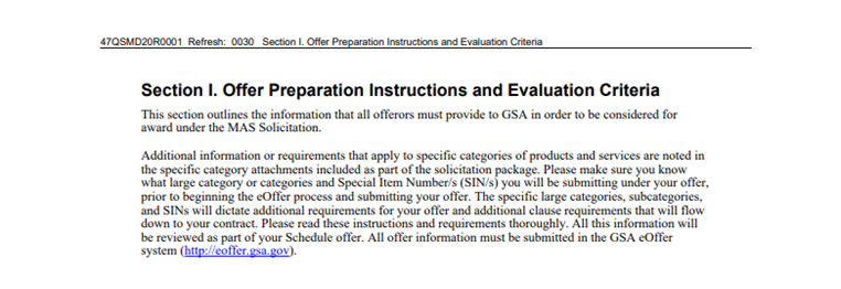 How To Read the MAS Solicitation – Section I
